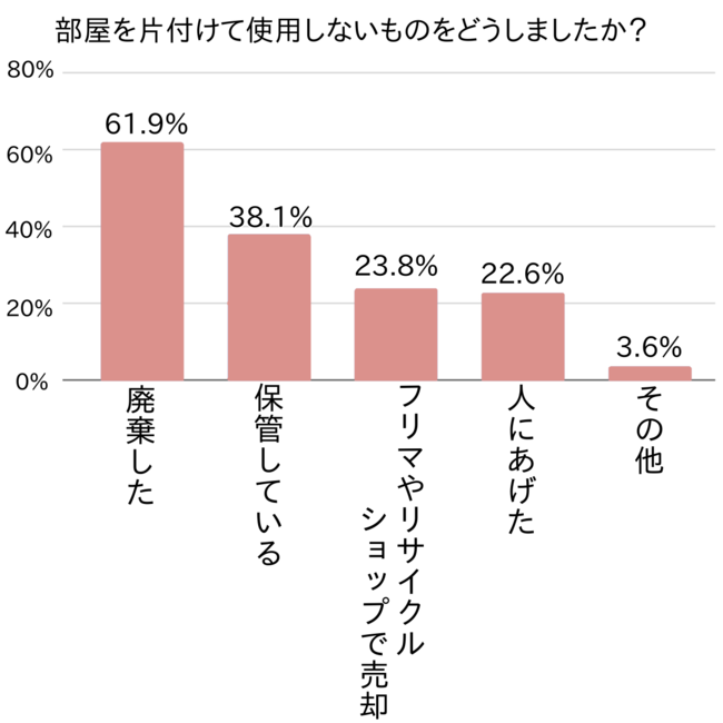 一番多い回答は「廃棄した(61.9%)」という回答でした。今後使わないものは原則廃棄する場合が多いと言えます。