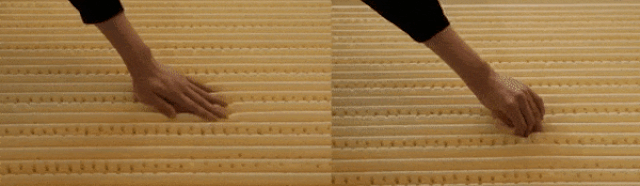 今回のプロジェクトを開始するにあたり、敷き寝具に関する調査を行ったところ、特に不満が多かったのが、敷き布団やマットレスのヘタリで、それにより腰に違和感を感じたり、寝心地が悪くなったと感じている方が多いことがわかりました。そこで私たちは、睡眠環境の質向上はもちろん、その機能をできるだけ長くお使いしていただけるへたらないマットレスを作ることにこだわりました。