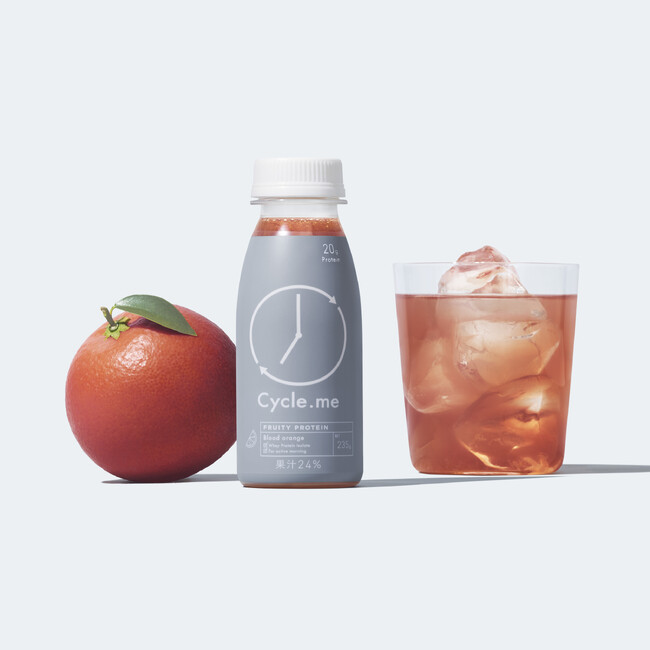 フルーティプロテイン〈ブラッドオレンジ〉は、果実感あふれる飲み口ながら、1本でタンパク質を20gも摂ることができる果汁系プロテインドリンクです。発売以来、多くの皆さまにご愛飲いただいており、サイクルミーオンラインショップならびにセブン‐イレブン(東京都・横浜市・川崎市・名古屋市・大阪市の一部店舗)でお買い求めいただけます。