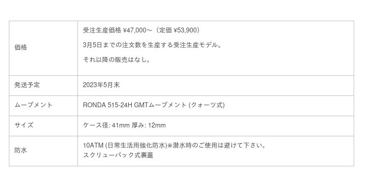 受注生産モデル:2月1日に発売を開始し、2月20日までにご注文があった本数しか生産されない限定モデルです。商品の発送は5月中旬を予定しています。