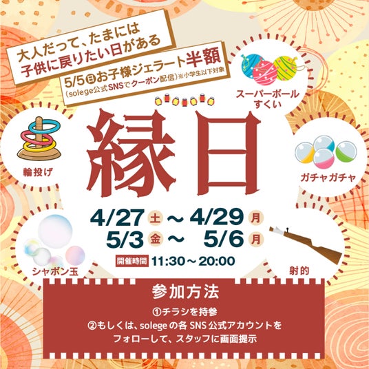 大人も子供に戻れるsolegeの縁日!一緒にゴールデンウィークを満喫しましょう!