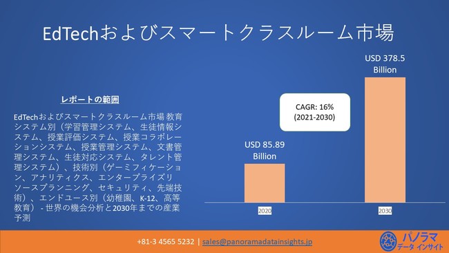Panorama Data Insightsが2021年12月17日に発表した新しいレポートによると、人工知能(AI)や機械学習(ML)などのスマートテクノロジーの採用が、世界のEdTechとスマート教室の市場に大きな成長機会をもたらすとされています。