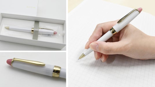ボールペンの軸には、北海道の雪景色とシマエナガの体色を思わせるラベンダーアイスを採用し、繊細にきらめくラメを施しました。さらに、アクセント部分にはやわらかな春を思わせるオールドローズを配し、季節の移ろいを静かに感じられる一本になっています。