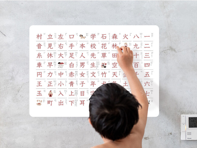 同ブランド42番目の商品となる「漢字ポスター(1年生)」は、小学1年生の漢字を覚える練習に使える知育ポスター。同ブランドの知育ポスターシリーズの中で、9種類目となる商品です。