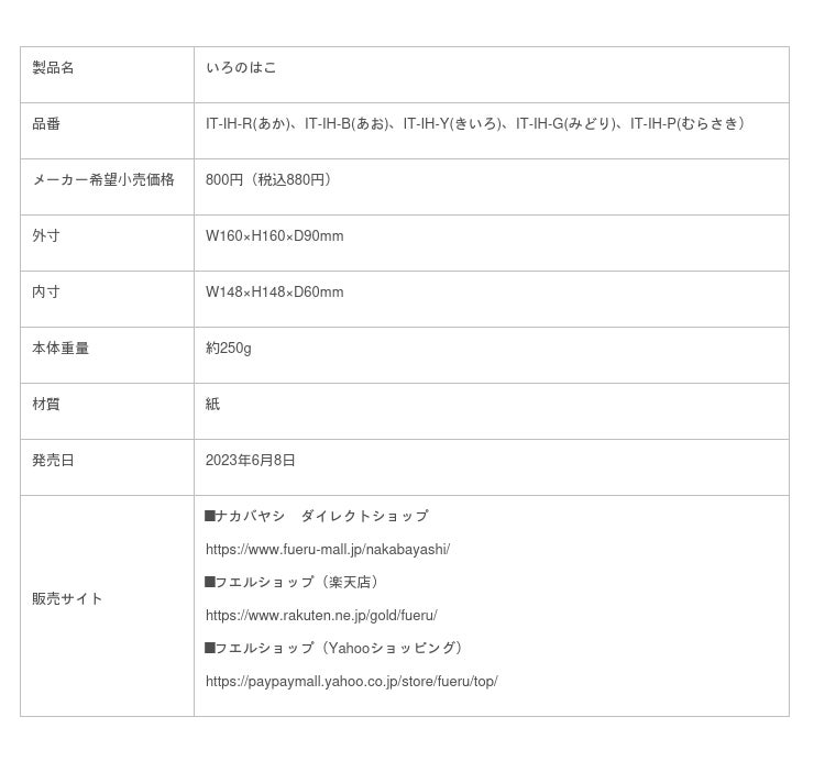 ナカバヤシ株式会社(本社:大阪市中央区、社長:湯本秀昭)は鮮やかなカラー展開で小物の収納やディスプレイボックスとして使える紙製収納箱「いろのはこ」を2023年6月8日(木)より当社運営ECサイト限定で発売します。