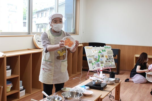 また、園児の前で大きなぶりを解体し、命を頂いていることを学ぶ食育体験のほか、地域の保護者も参加できる離乳食講習会・育児相談会など、“地域に開かれた保育園”としての取り組みも展開しています。