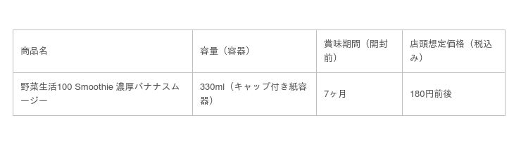 この度発売する「野菜生活100 Smoothie濃厚バナナスムージー」は、濃厚でクリーミーなバナナのおいしさにこだわったスムージーです。バナナ3本分の食物繊維※2が摂れ、植物性乳酸菌※3もとることができます。朝食時や、まったりとリラックスしたい時におすすめです。