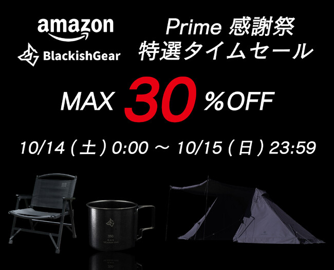 黒いキャンプギアを追求するアウトドアブランドBlackishGearは2023年10月14日(土) 0:00 ~ 2023年10月15日(日) 23:59まで開催される「Amazon Prime感謝祭 特選タイムセール」に参加いたします。BlackishGearの人気キャンプギアが多数ラインナップ!