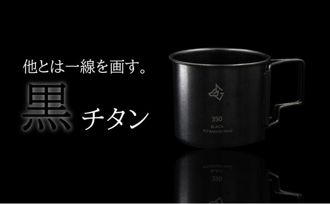 特殊な加工技術によりブラックに染め上げた革新的なチタンマグカップ