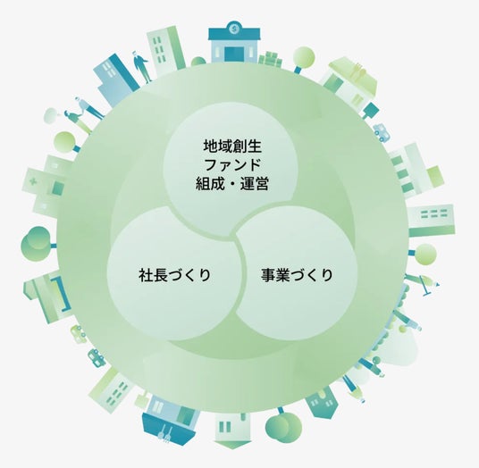 事業内容:地域金融機関との共同ファンド運営、新規起業支援・事業承継支援、投資回収スキームの設計・提供、その他地域活性化に関わるファイナンス事業全般