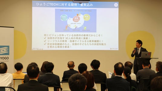 2024年10月3日(木)に「ひょうごTECHイノベーションプロジェクト」キックオフイベントが開催され、加西市教育委員会の担当者と当社担当者が出席しました。