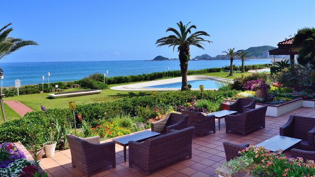 オーシャンフロントの客室はもちろん、温泉大浴場、露天風呂、レストラン、ロビーラウンジ、バー 等、館内のいたるところから海の絶景を一望いただけます。また、季節ごとの花が咲き誇るシーサイドガーデンでの散策や夏季にはプールサイドでのんびりとしたリゾートのひとときを過ごせます。