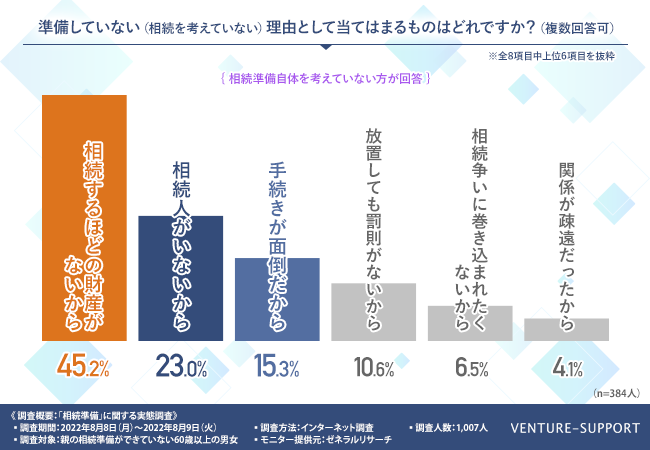 相続を考えていない理由で多いのは、「相続するほどの財産がないから」