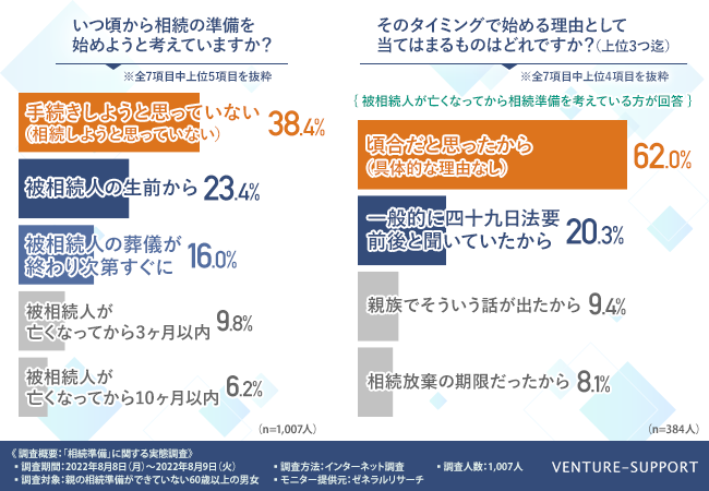 ベンチャーサポート相続税理士法人 (東京都中央区 代表税理士 古尾谷裕昭 https://vs-group.jp/sozokuzei/supportcenter/)は、「相続準備」に関する実態調査を実施しましたので、お知らせいたします。