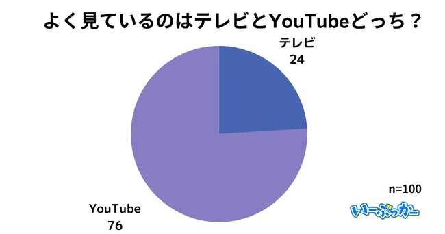 よく見ているのはテレビとYouTubeどっち?というテーマに対して、回答が圧倒的に多かったのは「YouTube」となりました。
