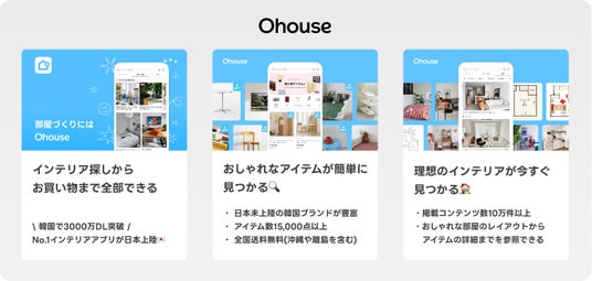 「오늘의집(オヌレチプ)」の日本版サービス「Ohouse(オーハウス)」は2022年にローンチし、直後に50万ダウンロードを達成。450%以上の成長を遂げ、2024年10月にEコマースをスタート。現在は取り扱い商品数10,000点以上と、韓国のインテリアブランドのECサイトとして最大級の規模で提供しております。