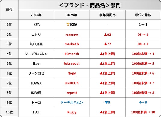 <ブランド・商品名部門>韓国ブランドが「IKEA」を追い越す勢いで急上昇