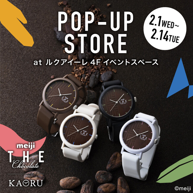 ポップアップ期間中、KAORU x 明治 THE Chocolateウォッチをご購入のお客様に先着で「明治 THE Chocolate」をプレゼント。