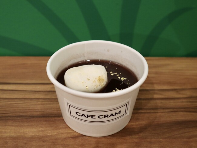 温かいぜんざいの上でとろっと溶ける求肥(ぎゅうひ)とバニラアイスがたまらない一品です。