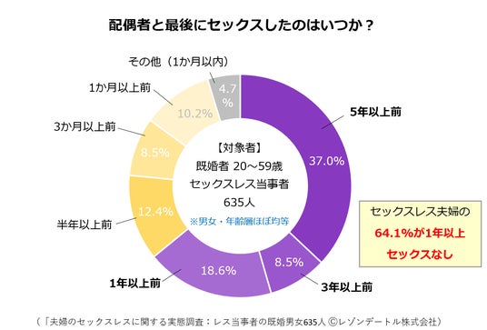 ●レス夫婦の64.1%が「1年以上セックスなし」、「5年以上なし」は37.0%