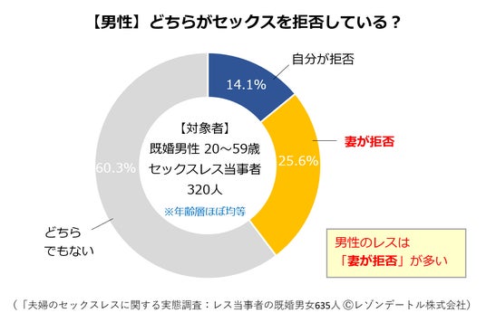 →男性の回答:「妻が拒否」が25.6%、「どちらでもない」が60.3%