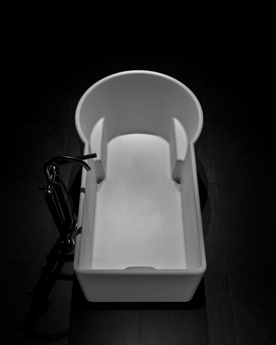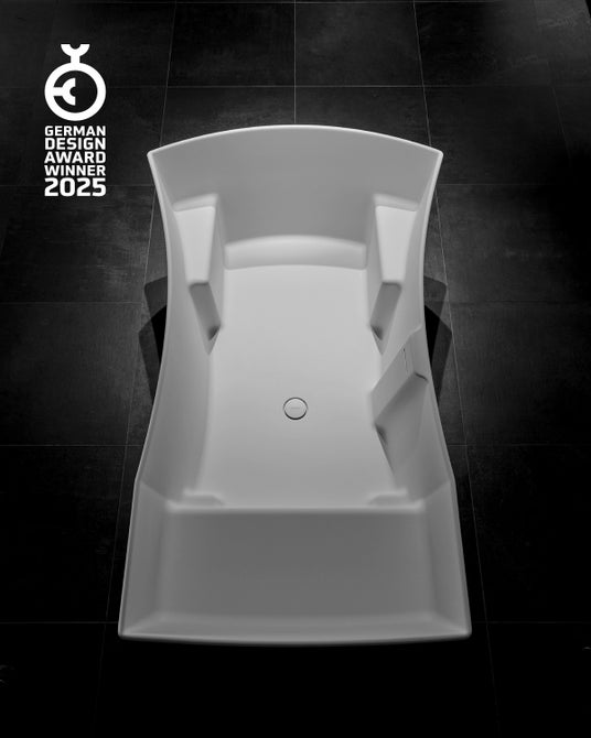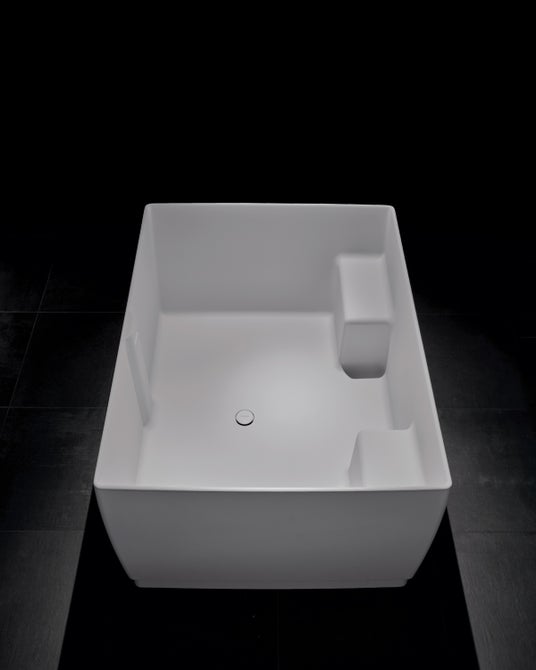 素材特性を活かした彫刻的で繊細なデザインが特長のバスタブです。緩やかに孤を描くラインは、全てが快適さの本質へとつながっています。アームレスト、ステップ、フットストッパーが体を包み込むようにサポートして安心感のある入り心地を提供します。