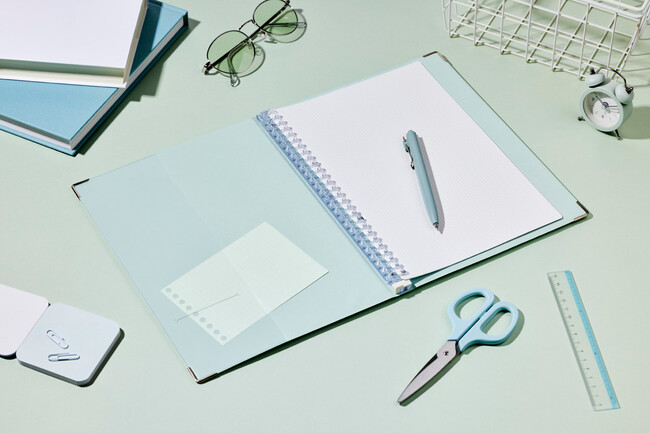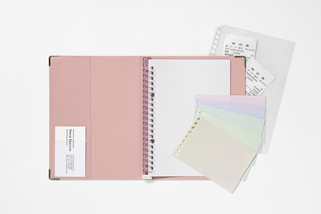 3.特別感のあるくすみカラーのルーズリーフと、迷わずさっと挟めるポケット付