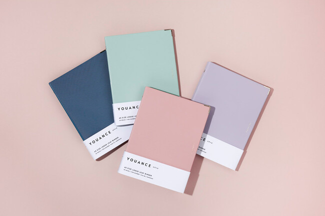 「ユアンス」は、やわらかで落ち着いた色のシンプルなバインダーです。身の回りの文具を好きな色で気分を上げたい・リラックスしたい20・30代の社会人に向けて、「ちょうどよい」をコンセプトに開発しました。