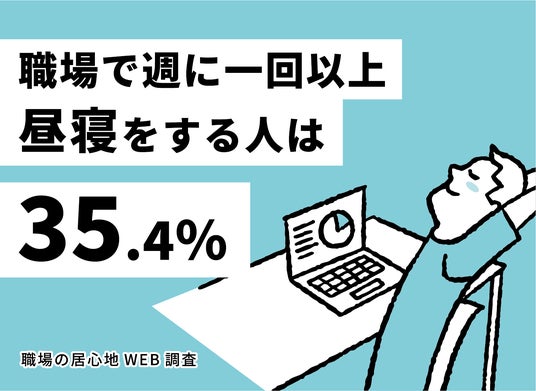 「職場で週に一回以上昼寝をする」人が35.4%、「職場で昼寝をしたことが一度もない」という人が29.8%。