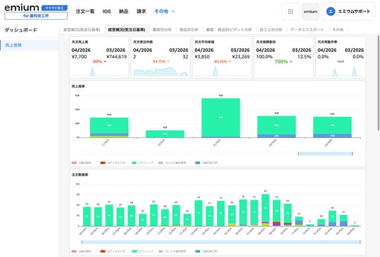 エミウム株式会社(本社:東京都新宿区、代表取締役:稲田雅彦、以下「当社」)は、歯科技工基幹業務クラウド「エミウム クラウド技工」の経営ダッシュボード機能を大幅にアップデートしたことをお知らせいたします。