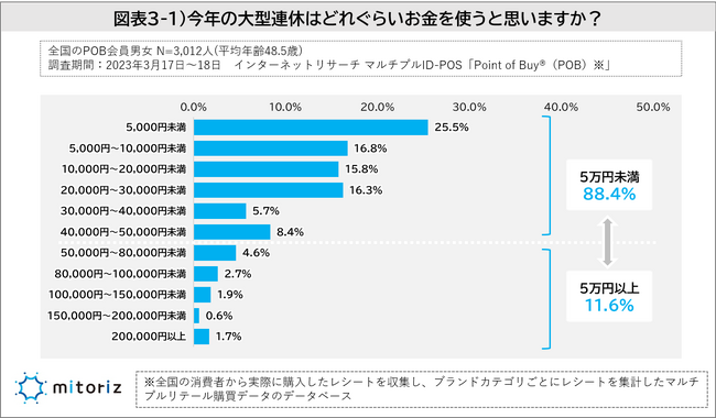 大型連休に使う予算について9割の人は5万円未満、4人に1人は5千円未満で考えている