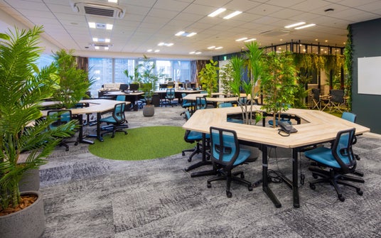 写真)環境配慮を意識して緑を取り入れた執務スペース
