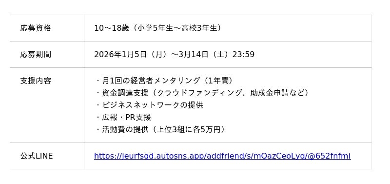 こども万博実行委員会は、子どもたちが自分の夢を発見し、挑戦する場として「こども万博」を全国で開催しています。メインコンテンツである「夢スピーチコンテスト」は小学生が自分の夢を言葉にする場として、これまで多くの子どもたちが登壇してきました。こども万博の活動の中から生まれたのが、中高生を対象に具体的に夢を実現するための起業家育成プログラム「YOUNG IMPACT」です。従来の「発表して終わり」のピッチコンテストとは異なり、選出後1年間にわたって経営者が伴走支援を続ける育成プログラムです。2025年10月にEXPO2025大阪・関西万博で始動した1期では、難民支援にクラウドファンディングで300万円超を調達した中学生兄妹や、地方からゲーム制作を通じて世界に挑戦する中学生を選出。1期生の活動が進む中、2期では対象を10~18歳に拡大し、DREAM PARTNERS(メンター)陣も増員して募集を開始しました。