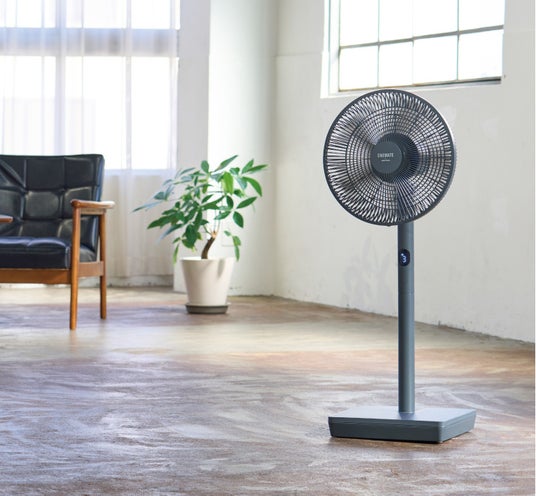 「ソーラーパワーリビングファン」は、電源コードから解放された新発想の扇風機。置く場所を自由に選べ、窓際なら太陽光で自家発電も可能です。