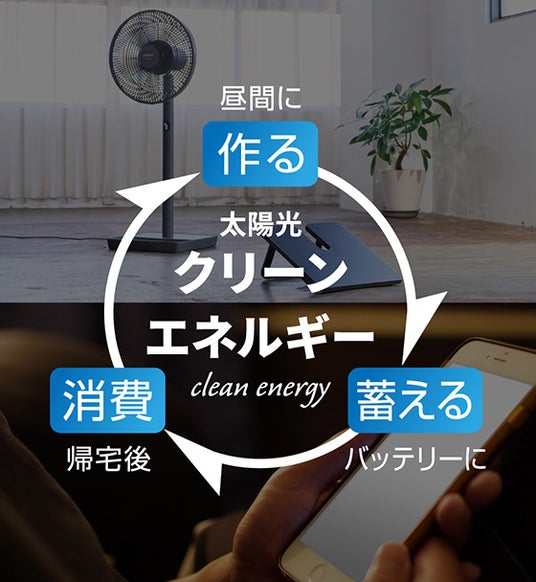 毎日使う扇風機でありながら、停電時の電源としても活躍。特別に備えなくても、持続可能な暮らしと防災力が共に高まります。