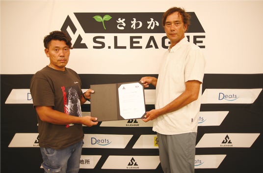 (写真左から、株式会社秀吉内装 代表取締役 新相秀樹氏/S.LEAGUE サブチェアマン デイヴィッド木下)