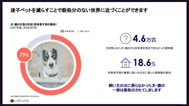 また、迷子になったペットのうち飼い主の元に戻ることができなかったペットの一部は殺処分されているのが現状となっており、これらの問題を解決できるサービス促進に積極的に携わってまいります。
