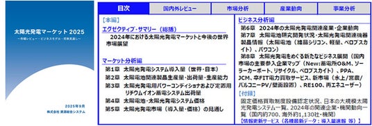 太陽光発電とその関連事業のコンサルティング業務を行う株式会社資源総合システム(本社:東京都中央区、代表取締役:一木修 以下「当社」または「資源総合システム」)は、2025 年 9月17日に「太陽光発電マーケット 2025 ~市場レビュー・ビジネスモデル・将来見通し~」を発行しました。
