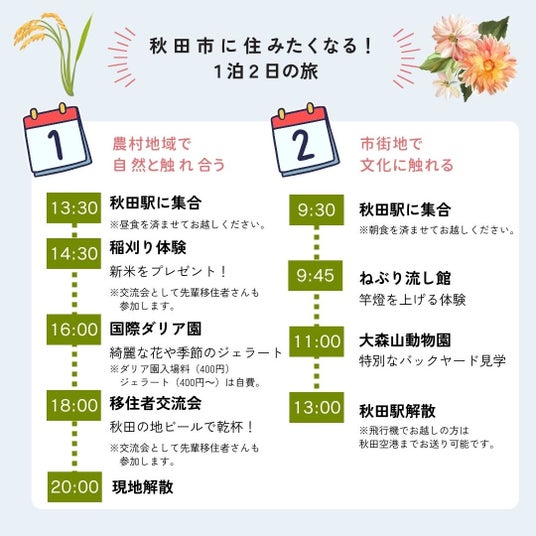 ツアー内容・日程 秋田市に住みたくなる!1泊2日の旅を、地域おこし協力隊の移住・定住コーディネーターがご案内します!