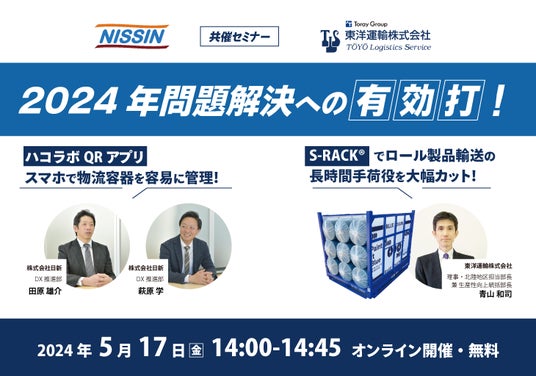 株式会社日新 と 東洋運輸株式会社 は、2024年問題の対応策について、オンラインセミナーを共催することをお知らせします。