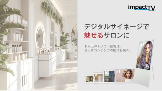 株式会社impactTV(以下、impactTVという)が提供するデジタルサイネージ「PISTA」は、小型~大型までラインナップがあり、お客様のロケーションに合わせて導入が可能です。またPISTA独自のマーケティング・プロモーション機能の活用で、サロンの魅力を最大限にアピールすることができます。
