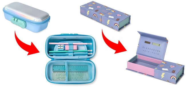 貴重品を入れられる鍵付きペンケース。あなたならこのペンケースに何を入れますか?うれしい文房具入り!電卓付きもご用意。電卓とペンケースを別々に持ち歩かなくていいんです。なんと便利なんでしょう。