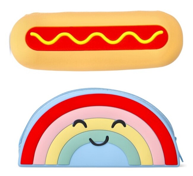 おいしそうなホットドッグ。ニコニコ笑顔の虹。どっちを持っていてもハッピーになれそうでしょ?シリコン製で触り心地も抜群です。