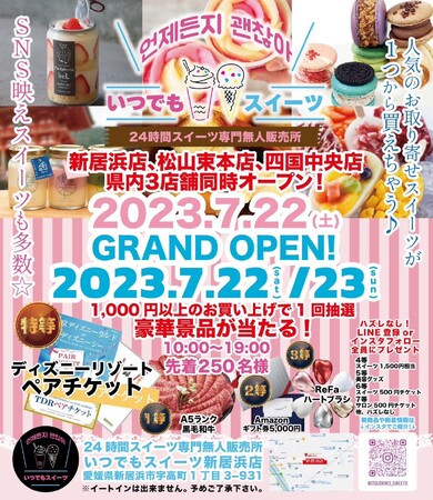 3月OPEN「いつでもスイーツ松山市/清水町店」