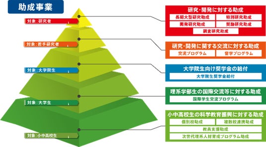 2014 年以降は、若手人材育成のため、大学院生向け奨学金や大学生の短期留学サポート、さらにすそ野拡大のため、小中高校生を対象とした科学教育振興助成など、幅広い層への支援を実現しています。このように研究者から小中高校生まで、トータルに事業展開をする国内有数のユニークな財団となっています。2024年に設立40周年を迎え、助成分野をBME分野に拡げるとともに、新たな表彰事業「神戸賞」を創設しました。また、同年11月1日に名称を「公益財団法人 中谷財団」と改称し、新たな一歩を踏みだしました。