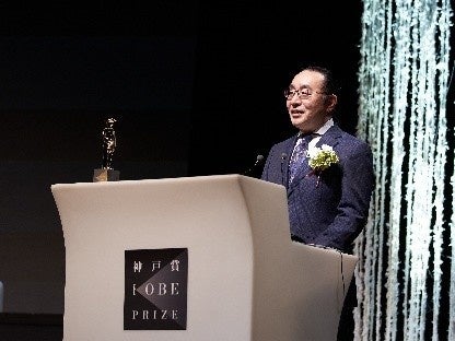最高賞である「大賞」に選ばれたのは、東京大学の菅 裕明教授です。菅教授は光の道を通り舞台へ登壇し、独創的な研究を象徴するトロフィーを授与されました。受賞のスピーチでは、「私の研究は独創的すぎて異端と言われていましたが、“異端”は認められた瞬間に“先端”に変わります。異端のみが先端になることができるのです」と、神戸賞が掲げる「独創性」の本質を突く力強い言葉を贈り、会場を大きな感動で包みました。