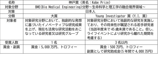 『神戸賞』とは、今後日本がリードしていく分野として注目している「BME(Bio Medical Engineering)分野~生命科学と理工学の融合境界領域~」においてイノベーションをもたらす優れた独創的な研究で実績を挙げた研究者や、そのユニークな研究で将来性が嘱望される若手研究者に光を当てる新たな学術賞で、今回が3回目の受賞者発表となります。