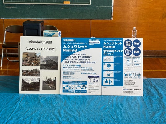 市民の皆さまへの配布は、災害時にトイレが使用できない可能性や衛生環境の悪化など、生活面での負担を軽減するための備蓄の重要性を伝える啓発の一環として行われたものです。