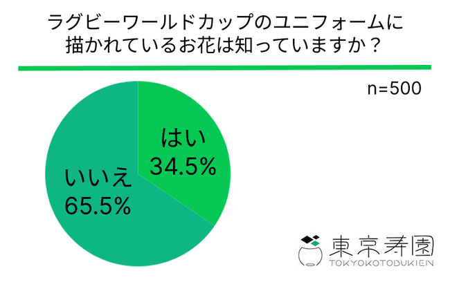 「ラグビーワールドカップのユニフォームに描かれているお花は知っていますか?」という質問に、「はい」と回答した方は34.5%、「いいえ」と回答した方は65.5%という結果になりました。