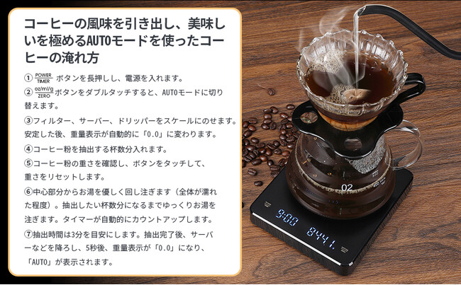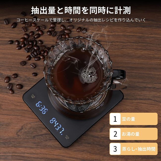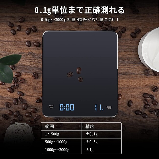 0.1g計量で豆の量を正確に測ることができるコーヒースケールで、自分だけの一杯に出会う!